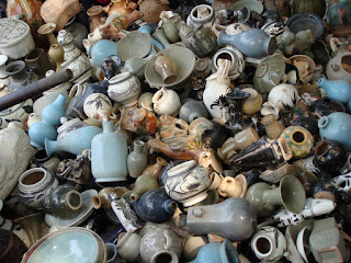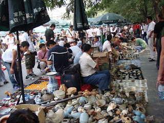 去前北京朋友頻頻落藥,說逛潘家園宜先作好心理準備,無論甚麼東西,都當作假貨好了。買的是物品的造型,設計和手工,覺得喜歡,便可討價還價。殺他一半價錢已算出手闊綽,肯定立刻成交。如果不買也不覺損失,上天開價,落地還錢者大有人在。賣方開價三千,買方大可還價三十,來回拉鋸,降到合心水的價錢才成交。