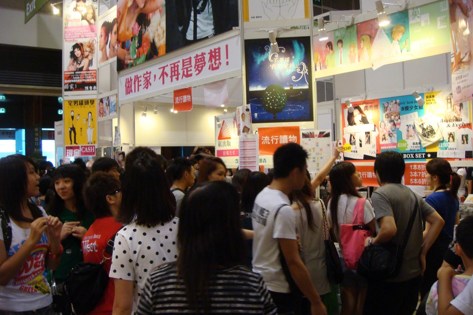 另經過某出版社的攤位,圍了幾十個青少年,都帶著照相機,聽說是有明星到來簽名,我當然也遠遠避開了。看見主角是個二十來歲的男子,沒有打聽是誰,是甚麼類型的明星,就算告訴我也肯定末聽過。不過,這家出版社附近的攤位通道都給人群阻塞了,生意肯定要受到影響。