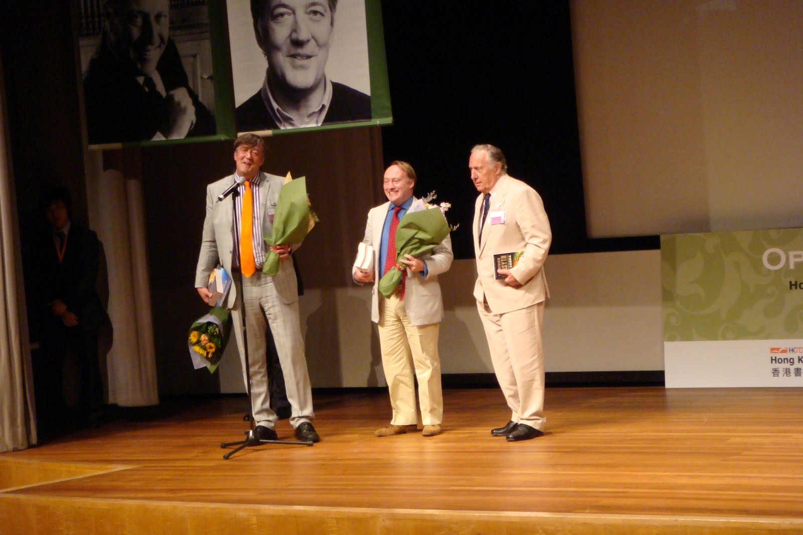 去聽了鄧永鏘主持的國際名作家座談會,幾個英國作家都是大師風範,甚具氣勢,辭鋒凌厲,有備而來,作為主持人的鄧永鏘也表現出色,控制得宜,不過說話間中有點尖銳,「窒人唔使本」。現場氣氛活潑,聽眾反應熱烈,對話充滿英式幽默,來聽這個座談會是一次愉快經驗。可惜慕名而來的聽眾太多,坐滿兩個演講廳。我們這些沒有預先報名,臨時入場的聽眾只能隔著演講廳,觀看電視屏幕的轉播。座談會結束後,鄧永鏘和三位國際名作家才過來打個招呼,與聽眾見見面。